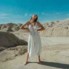 Each piece is made from delicate, high-vibe fabrics. To preserve their soul, we recommendhand washing in cold waterandair drying in shade. Avoid high heat or ironing on fragile fabrics.
