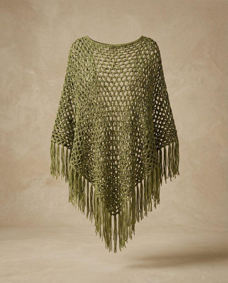 As each piece is entirely handmade, slight variations in knit texture, fringe movement, and bead placement may occur. These subtle differences are not imperfections — they are what make every poncho truly one of a kind, carrying the unique signature of the hands that created it.